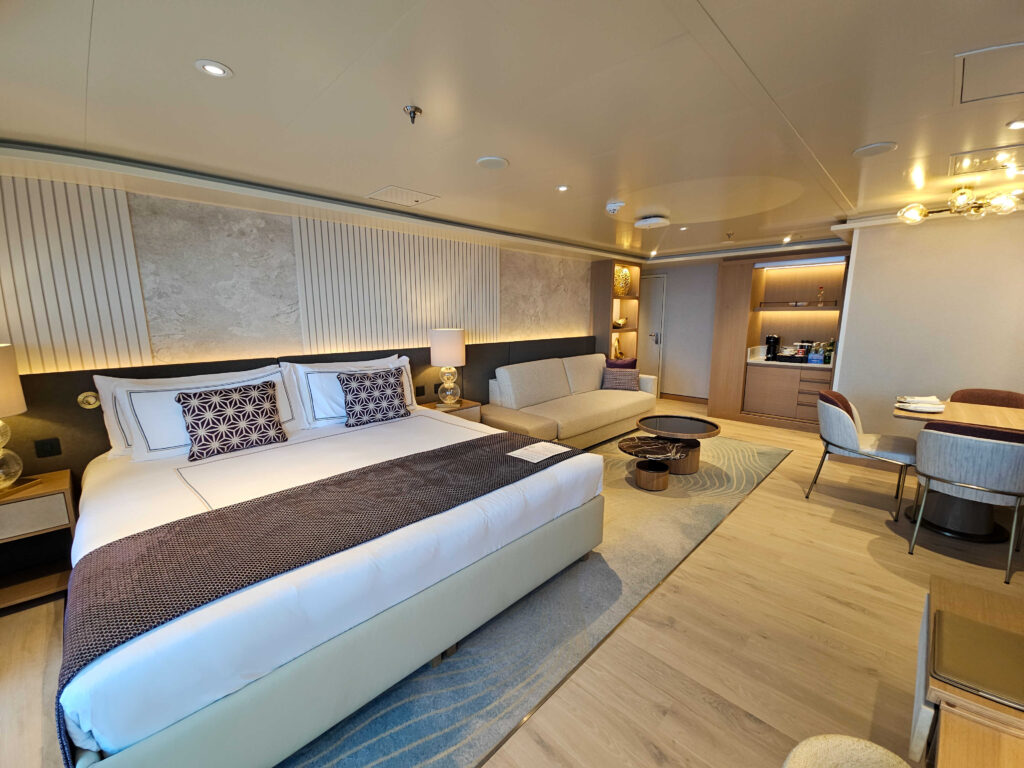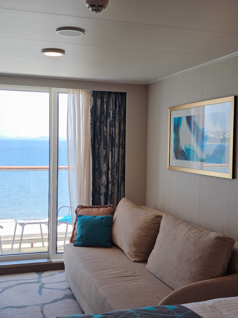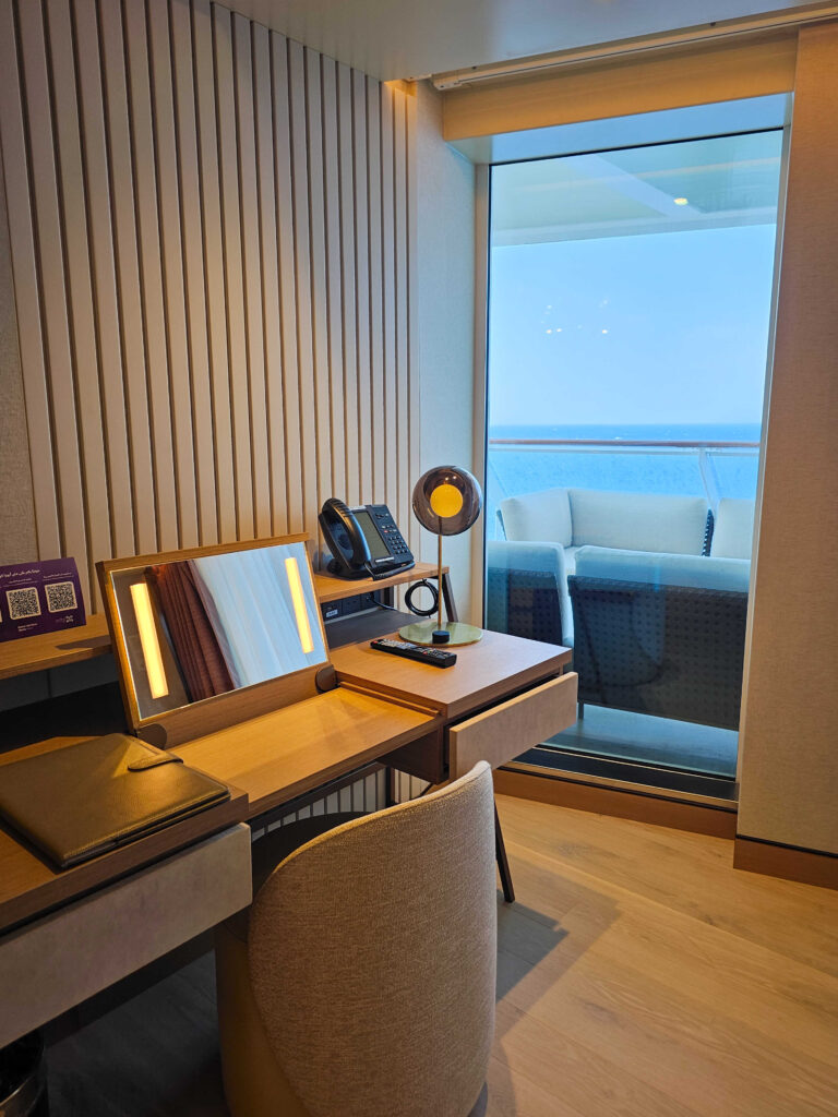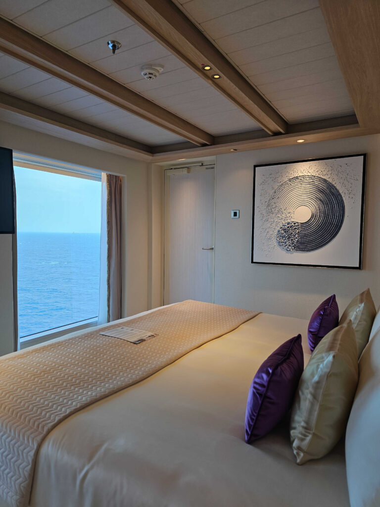 Noi am ales o cabină cu balcon, pentru că nimic nu se compară cu senzația de a-ți bea cafeaua dimineața privind marea sau un port nou. Cabina a fost confortabilă și bine gândită. Am vizitat și celelalte tipuri de cabine, de la interioare până la cele cu vedere la mare, dar și suitele royale și cele prezidențiale. Suitele royale erau dotate cu jacuzzi pe terasă, produse de beauty de la Amouage, uscătoare Dyson și multe alte elemente care îți arătau cum arată o vacanță „all luxury” pe mare.