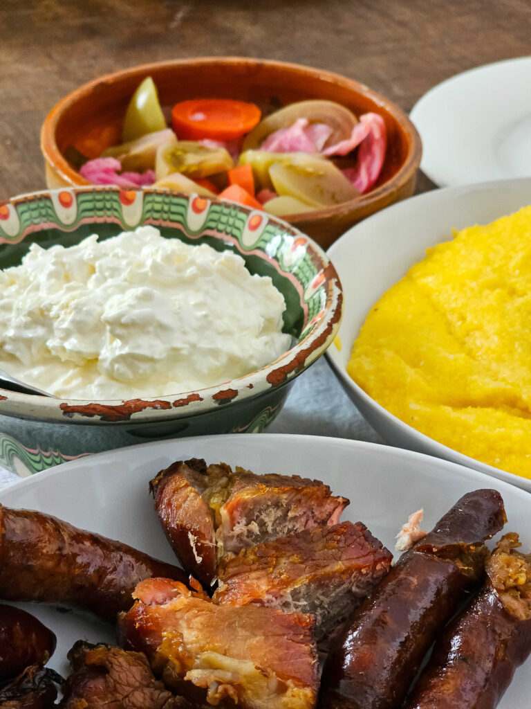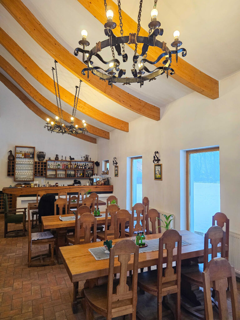 Hanul nu funcționează cu meniu à la carte, ci cu preparate gătite în fiecare zi, ca acasă. Mâncarea e gustoasă, făcută din ingrediente locale, iar prețul e mai mult decât corect: 65 lei/zi/persoană pentru prânz și cină, cu micul dejun inclus în tariful cazării.