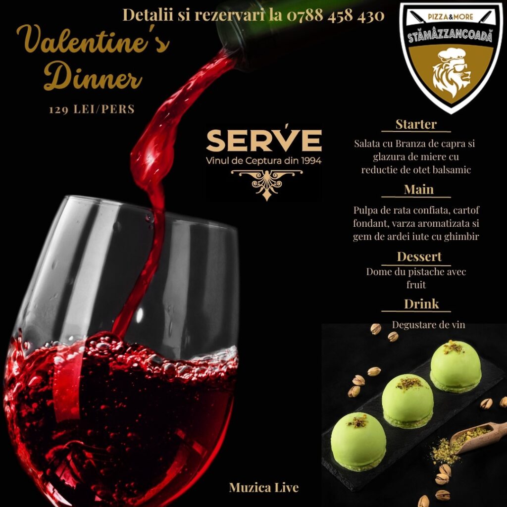 Iti propun sa rezervi o masa la Stamazzancoada chiar de Valentine’s Day, cand te poti bucura de atmosfera placuta, de meniul special conceput pentru aceasta ocazie si de o degustare de vin, alaturi de persoana iubita.